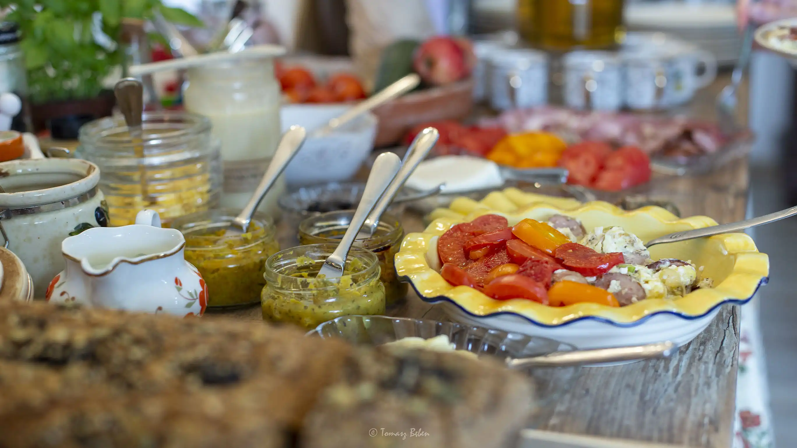 Zjesz u nas świeżo upieczony chleb, jajka od szczęśliwych kurek, pyszne pasztety wegetariańskie, swojskie dżemy i przetwory.